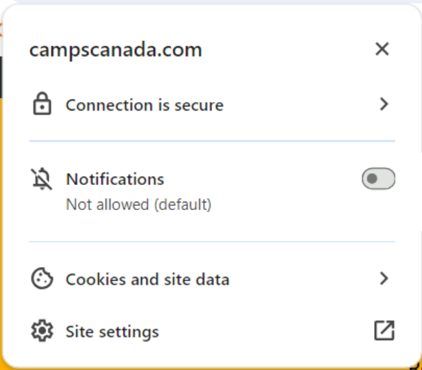To ensure you’re on a secure website, please check your browser’s address bar. Depending on the web browser you use you should see either a “lock symbol” and an “https://” prefix before the web address (https://campscanada.com/secure-pay/)